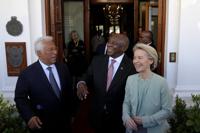 European Commission President Ursula von der Leyen, European Council President António Costa and South African President Cyril Ramaphosa spoke of the need to boost international cooperation during the meeting, held at the South African leader’s Cape Town office.