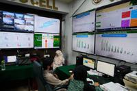 Employees of Environment Protection Agency monitor smog and air quality in a monitoring room, called the Smog Cell, in Lahore, Pakistan, Thursday, Oct. 23, 2025. (AP Photo/K.M. Chaudary)