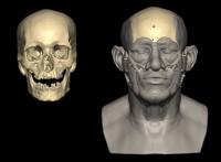This image provided by researchers shows a facial reconstruction of a man radiocarbon dated to around 2855–2570 cal BCE found in Nuwayrat, Egypt. (Caroline Wilkinson/Liverpool John Moores University via AP)