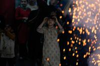 Children play with firecrackers on Diwali festival, the Hindu festival of lights, at an orphanage in Jammu, India, Sunday, Oct.19, 2025.(AP Photo/Channi Anand)