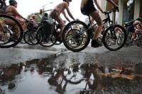 Fewer people were fully naked than usual — likely because of the cool, wet weather — but some still bared it all and rode wearing only bike helmets.