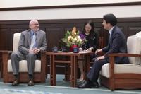 In this photo released by the Taiwan Presidential Office, American Institute in Taiwan's (AIT) director Raymond F. Greene, left speaks with Taiwan's President William Lai Ching-te, in Taipei, Taiwan on July 10, 2024. Raymond who newly assumed his office on July 9, met with Taiwan President William Lai in the morning of July 10, when both reiterated on the strong partnership Taiwan and the U.S. nurtured from the past, with ups and downs. (Taiwan Presidential Office via AP)