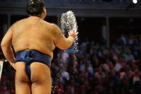 Organizers of the London event say they hope to show Japan’s rich culture as well as its traditional sport that pits two huge men clad in very little against each other in a test of strength and technique.