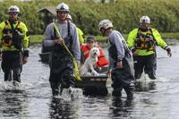 Animals were being saved, too. Cindy Evers helped rescue a large pig stuck in high water at a strip mall in Lithia, east of Tampa. She had already rescued a donkey and several goats after the storm.
