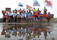 FILE - Supporters of Scottish Independence hold a banner outside the Supreme Court in London, Tuesday, Oct. 11, 2022. Britain’s Supreme Court is due to rule Wednesday, Nov. 23, 2022, on whether Scotland can hold a vote on independence without the consent of the U.K. government, a case with huge implications for the future of the United Kingdom. (AP Photo/Alberto Pezzali, File)